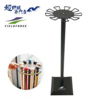 直径28cmの丸形スタンドに9本収納可能なフックがついています。