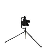 フライノックマシンの発射口を上に向けて高く上がるボールを正確にキャッチ
