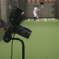フォースマシンを使用したバッティング練習風景10m前後の距離でスピード調整して実戦さながらの打撃練習