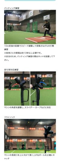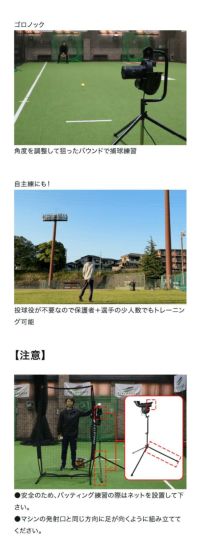 ※バッテイング、ゴロ捕球練習は屋内での使用を推奨します。