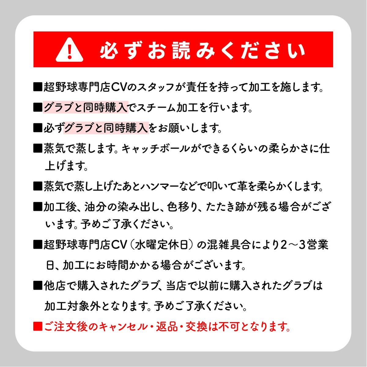 他の画像を見る グラブの型付け購入ページ■別途グラブの同時購入必須 超野球専門店CV加工 グラブ 型付け グラブスチーム加工 野球 ソフトボール グラブ グローブ グラブ同時購入のみ可 当店販売価格 ¥ 1,000 税込 4.75 (4) 詳細を見る お気に入りに登録する