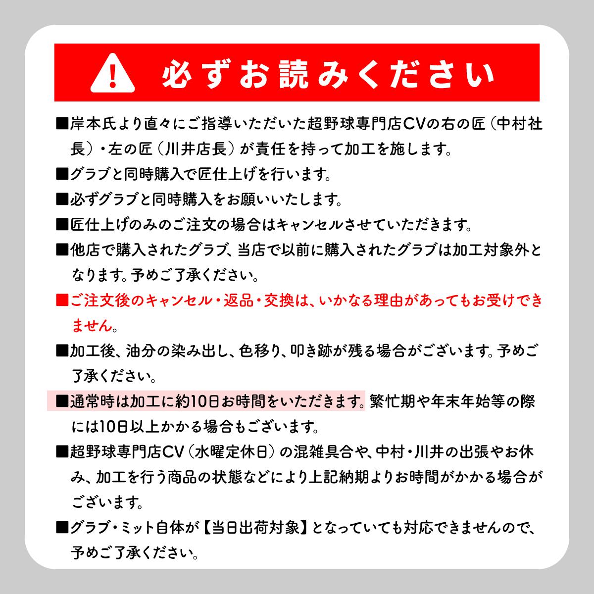 他の画像を見る グラブの型付け購入ページ■別途グラブの同時購入必須 超野球専門店CV加工 型付け 野球 ソフトボール対応 グローブ 匠仕上げ グラブ型付け 右の匠 左の匠 岸本耕作氏直伝 グラブ同時購入のみ可 当店販売価格 ¥ 4,000 税込 5.00 (2) 詳細を見る お気に入りに登録する