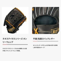 厳選された北米原皮を日本のタンナーが加工したこだわりのステアレザー仕様。平裏には肌触りの良いヌバックレザーを採用しプレー中の汗による手指の滑りを抑制し素手感覚キープ。刺繍風ネオステイタスウェルダーラベル搭載。