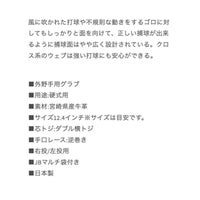 風に吹かれた打球や不規則な動きをするゴロに対してもしっかりと面を向けて、正しい捕球が出来るように捕球面はやや広く設計されている。クロス系のウェブは強い打球にも安心ができる。