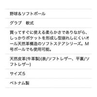買ってすぐに使える柔らかさでありながら、しっかりポケットを形成し型崩れしにくいオール天然革構造のソフトステアシリーズ。M号ボールでも使用可能。
