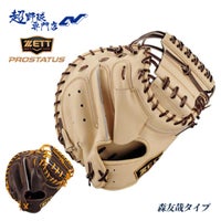 捕手の理想を追求したプロステイタスシリーズキャッチャーミット。縦型で深めのポケットの森タイプのコンパクトモデル。軽量で操作性も向上。厳選された軟式プロステイタスレザーに厚みのあるハード芯を使用し捕球面の張りとベストな型をキープ。親指カーブマチ構造や独自の指カバー型、高耐久WEBが安定した捕球をサポートする。