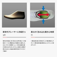 新開発3Eαラストを採用したシューズフォルムとフィット感がある新商品埋込みスパイクネオステイタスWMB3本ベルト式。3Eαラストの特性はつま先甲部を低設定することでフット感を向上させ、ボールガウス部を広く設計する事でワイド感を体感出来る。中足部から後足部にかけてはシャープ感を重視することで足との一体感が体感出来る。足入れ部のライニング素材はメッシュ生地でさらに履き口パットを厚くすることで、快適な履き心地とストレスのない足入れを実現。アウトソール金具TAIQ刃(耐久刃)は他社対比では耐摩耗性が最も優れていてスパイクが長持ちし優位性あるモデル。NEWネオステイタスエンブレム搭載モデル。重量は260Gとベルト式では当社品の中で最軽量。