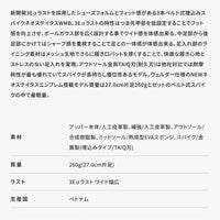 ■アッパー本体/人工皮革製、補強/人工皮革製、アウトソール/合成樹脂製、ミッドソール/熱成型EVAスポンジ、スパイク/金属製(埋込みタイプ/TAIQ刃)