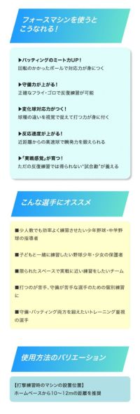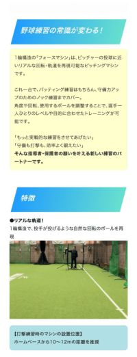 (※フォースマシンの設置場所は、ホームベースから約10mを推奨)
