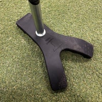 土台足が一本のほうから二本のほうに向かってスイングすることで、ティーが倒れようとする力を二本の足がスパイクの様に地面に食い込むイメージになり抜群の安定感を構築します。今までの置きティーのスイングごとに倒れてしまう、ずれていってしまうというストレスに対応した商品です。