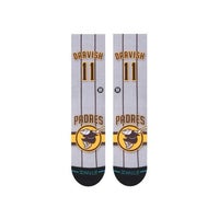 北海道日本ハムファイターズに1位指名で入団、その後MLBレンジャーズやドジャースなどを経て、現在サンディエゴ・パドレスの投手として活躍するダルビッシュ有とのコラボレーションモデル。肌触りの良い滑らかな素材と深いヒールポケットが足のラインに心地よくフィットし、踵とつま先部分に施された強化加工が優れた耐久性を実現。スタンスならではの極上のフィット感と遊び心あふれるデザインでコーディネートにインパクトをプラスします。