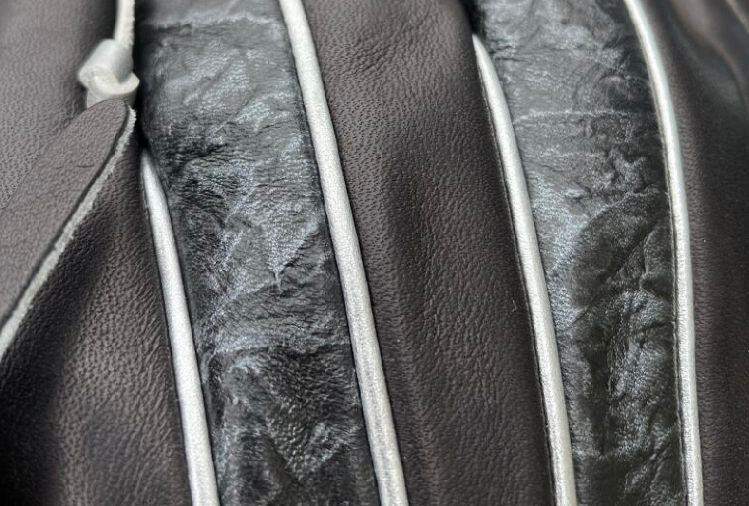 受給面は柔らかめ、背面の型押しレザーは硬めだけどしなやかでコシがあり指先まで力が伝わる!ただカッコ良いだけではありません。